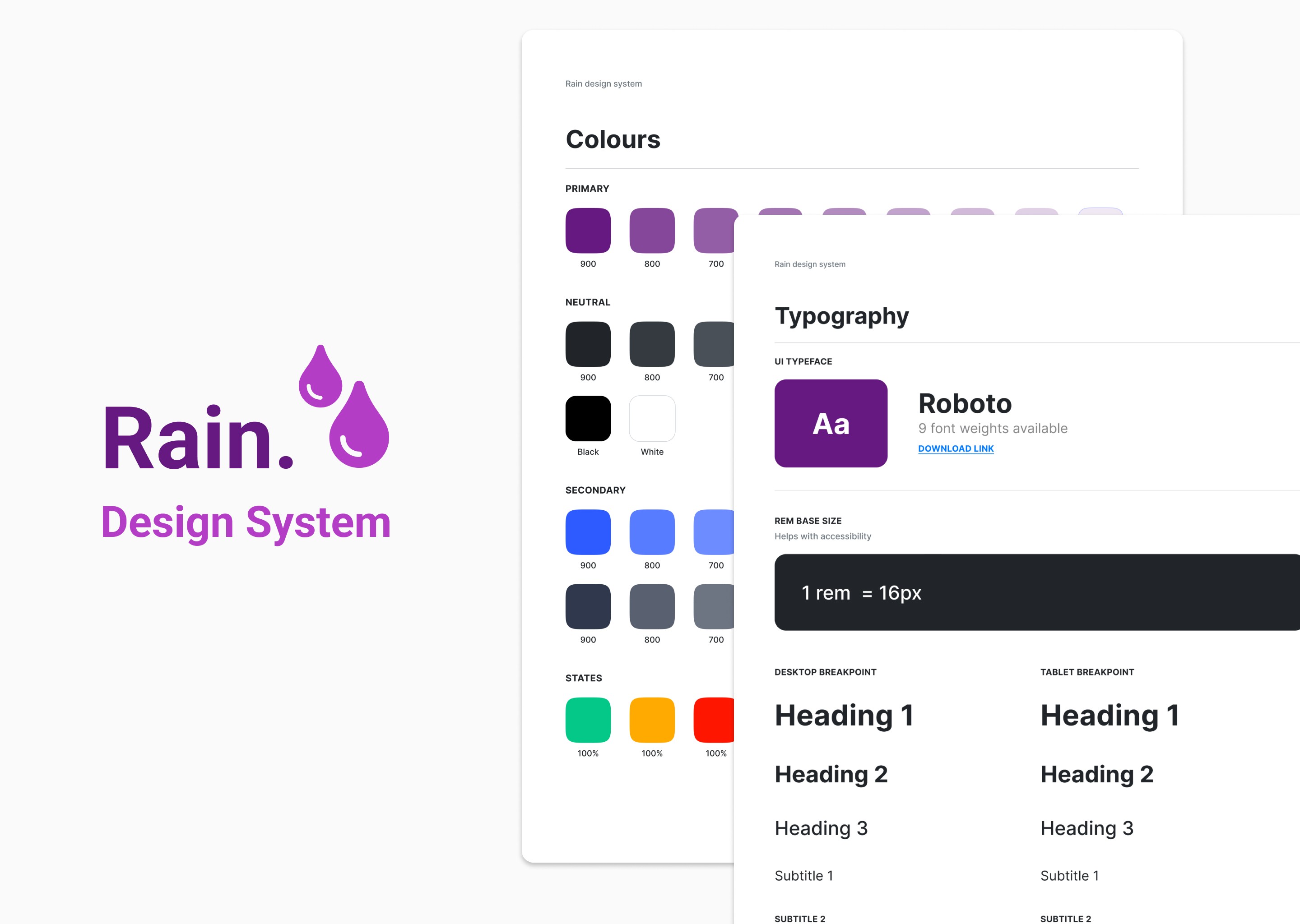 Improved the RAIN design system by standardising Figma frame usage, auto layout, and component properties, increasing scalability and UI consistency across features.