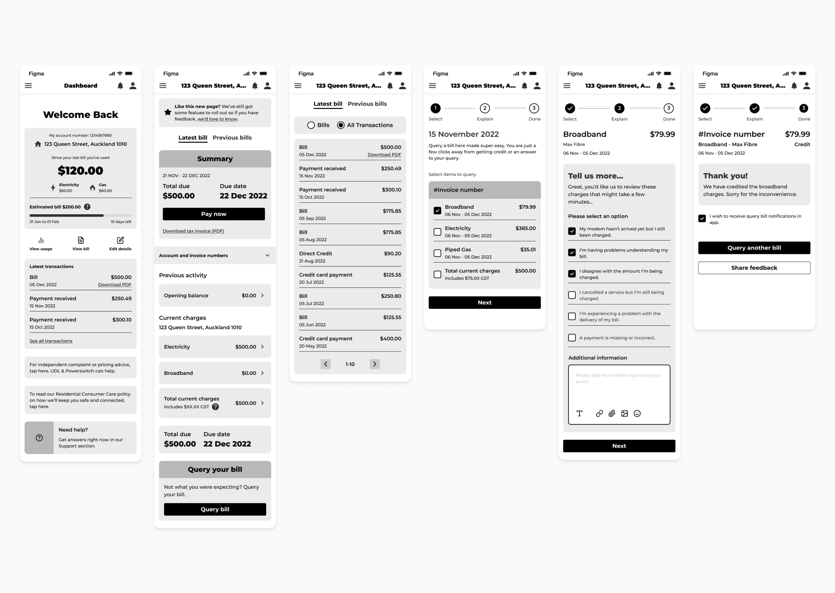 This work reinforced the importance of strong cross-functional relationships and early design involvement in prioritising solutions that matter most to both users and the business, while iterative user testing ensured decisions addressed real pain points rather than assumptions; next, I see opportunities to expand bill management through features like consumption trends and alerts, and to deepen integration between self-service tools and support workflows for a more seamless assistance experience.