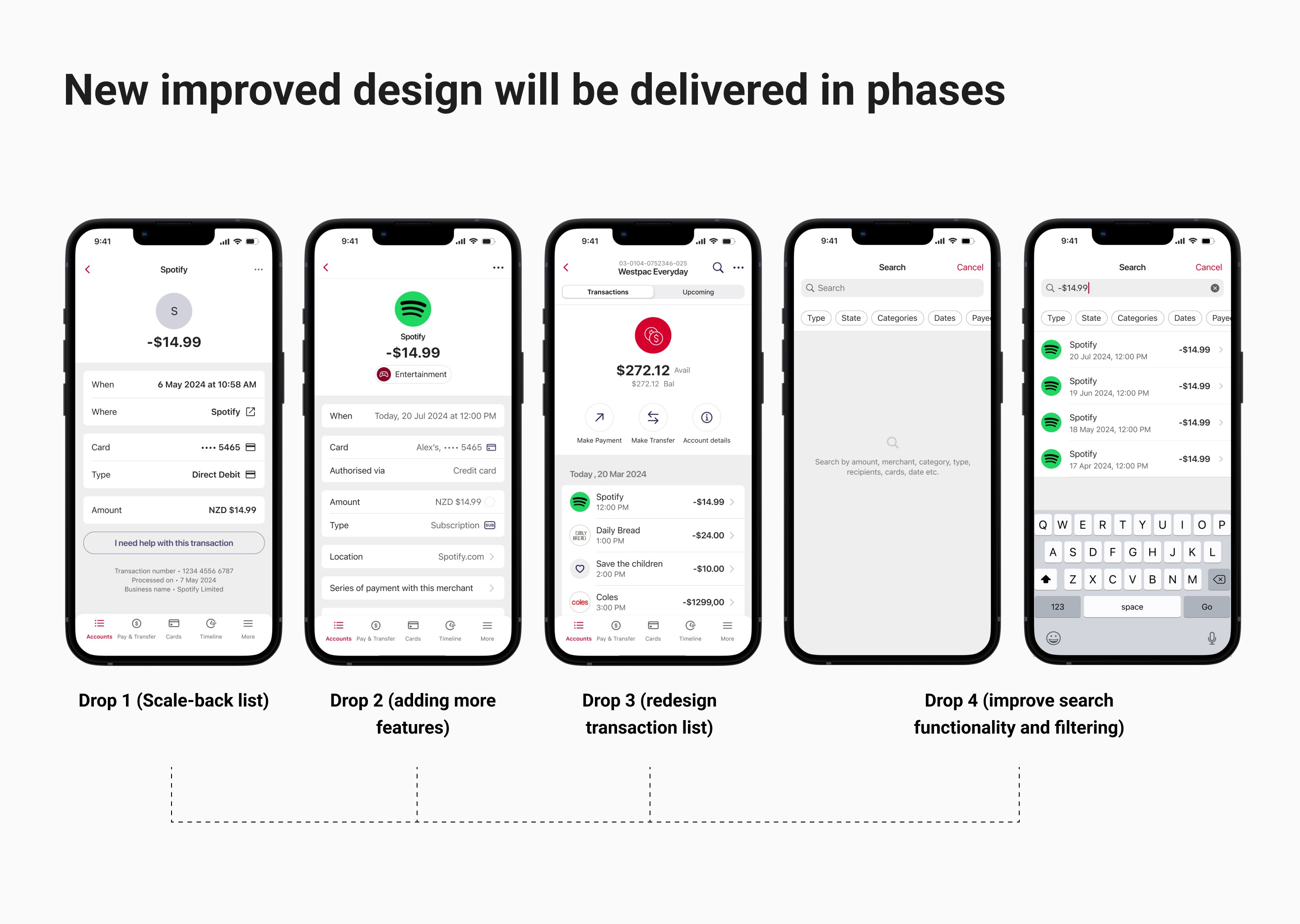 Enhance the Westpac One app with clearer transaction details and improved search, reducing customer confusion and support friction.